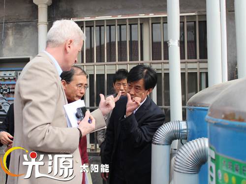 識別團一行在河北省發改委外資處副處長史海峰、河北省財政廳涉外處副處長何貴滿、河北省新能源技術推廣站副主任王香雪及市直有關部門負責人的陪同下實地考察了光源公司威縣農村太陽能熱利用及生物質燃料項目。通過考察了解了太陽能采暖、太陽能熱開水系統的工作原理、項目周邊環境及使用情況,并對項目的具體情況展開了座談討論。光源公司副總經理邵東坤就光源公司的基本概況、經營情況以及世行貸款項目概況向識別團進行了匯報,識別團針對項目的建設內容、開發潛力、市場風險等問題進行了提問和討論。