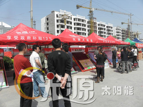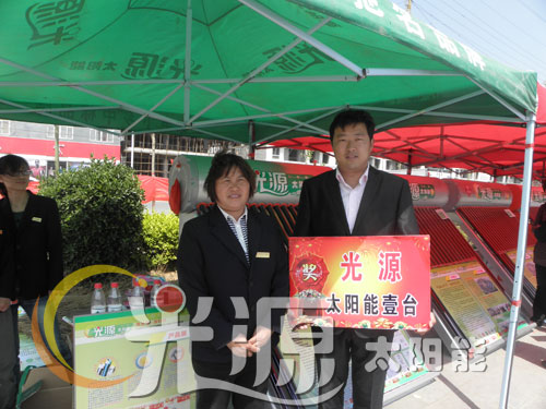 廣場的一側,光源銀月亮、浴美人系列太陽能列隊排開,漂亮的機型,明碼標價的質優(yōu)價廉產品,吸引了廣大老百姓駐足凝神觀看!實實在在的優(yōu)惠政策,在加上工作人員耐心細致的講解,廣大老百姓紛紛踴躍定機!