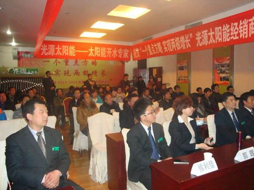 2014年2月17日,光源太陽能安康地區年會順利召開,光源太陽能熱水器營銷事業部部長郭暉、西南華中營銷部總經理郭明增、市場部經理侯利佳、陜西大區經理王會茂、安康銀浩商貿有限公司總經理潘德銀及100多名經銷商朋友參加了本次會議。