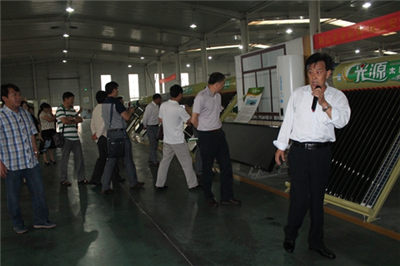 (光源太陽能公司副總經理向考察團介紹太陽能真空管)