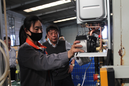 接著,焦世清主任來到公司壁掛爐生產車間,實地考察了國家支持技改項目---煤改氣壁掛爐生產線。焦主任囑托公司,要繼續做好產品,保證科學技術在世界的領先地位