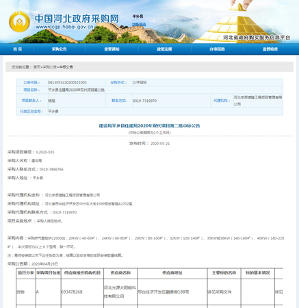 光源公司憑借完善細(xì)致的服務(wù)成功中標(biāo)建設(shè)局平鄉(xiāng)縣住建局2020年雙代項(xiàng)目第二批,這兩次連續(xù)中標(biāo)既是對(duì)光源高標(biāo)準(zhǔn)高質(zhì)量產(chǎn)品的認(rèn)可,這對(duì)光源來(lái)說(shuō)既是難得的機(jī)遇更是嚴(yán)峻的挑戰(zhàn)。