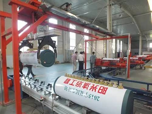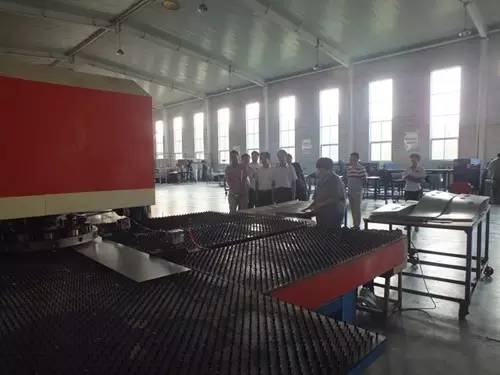 在參觀完太陽(yáng)能真空集熱管制造車間后又到了太陽(yáng)能工程設(shè)備總裝車間,先后參觀了全自動(dòng)下料開平設(shè)備、轉(zhuǎn)塔式全自動(dòng)數(shù)控沖床生產(chǎn)線、全自動(dòng)外皮雙頭縮口滾花機(jī)、臥式反向積放發(fā)泡生產(chǎn)線、環(huán)戊烷聚氨酯高壓發(fā)泡機(jī)、全自動(dòng)數(shù)控打包生產(chǎn)線以及壁掛太陽(yáng)能生產(chǎn)線等等。